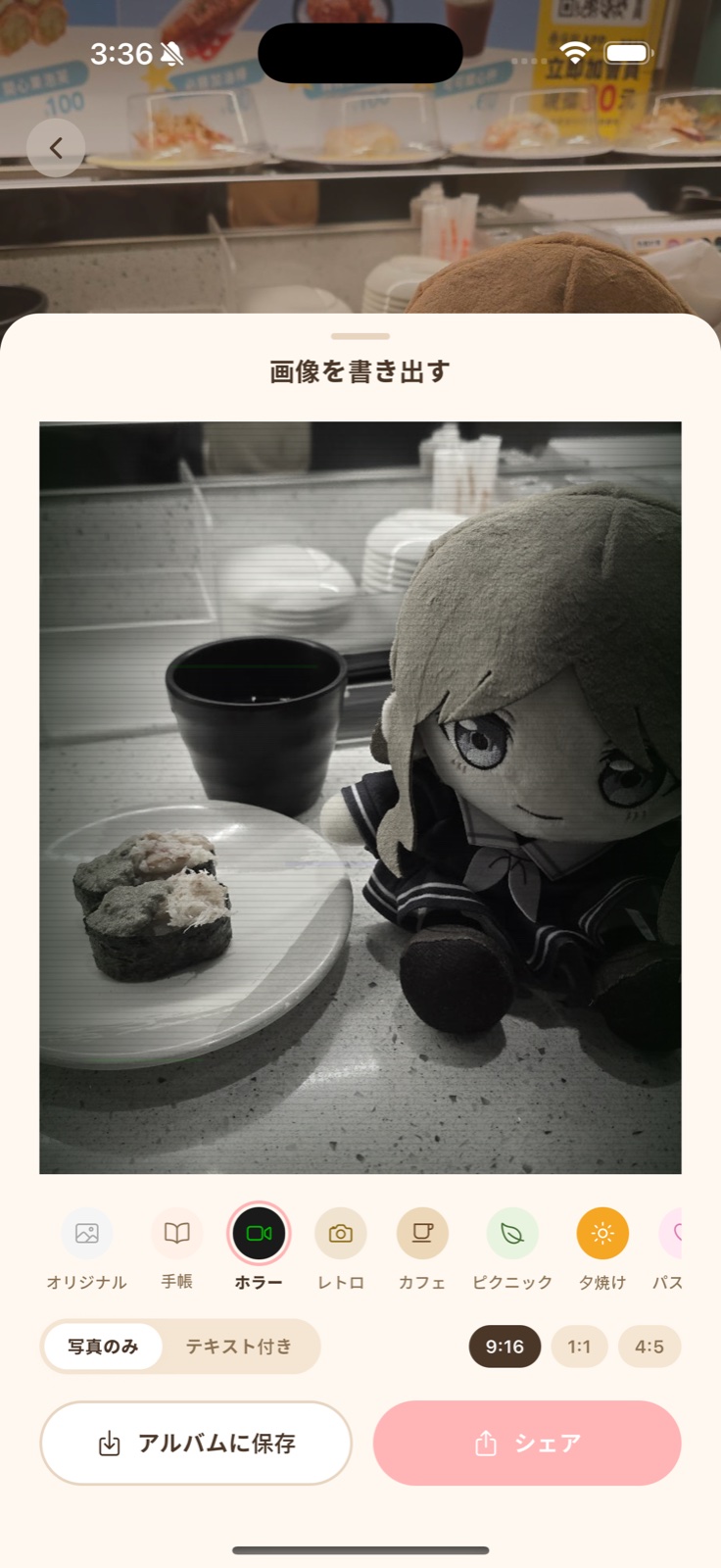 写真を撮るだけで、その日の記録は完成。書きたい気分の日だけ、やさしく言葉を足せます。